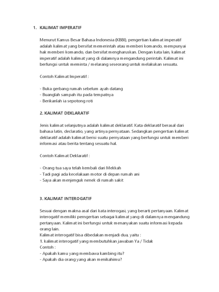 Mengetik makna kata sifat imperatif adalah sesuatu yang tidak rumit. Kata kata yang mudah dipahami pembaca berasal dari penulis yang mengetahui benar apa yang dapat dituliskan. Setidaknya itulah pelajaran sederhana yang selama ini kami dapat berasal dari pengalaman menulis. Semakin kita menyadari dengan apa yang kami tulis, makin lama kita dapat menuliskan dalam bahasa yang sederhana apalagi sanggup dipahami oleh orang awam. Untuk hal-hal yang rumit biasanya dijelaskan dalam bentuk analogi. Jika ada makna sulit, pastikan kami berikan penjelasannya kepada pembaca. Penggunaan kalimat deskriptif terhitung kadang dibutuhkan sehingga postingan lebih hidup. Kalimat deskriptif sebabkan pembaca meraih gambaran tentang apa yang tengah kami jelaskan. Simak makna kata sifat imperatif Ada 12 contoh tentang makna kata sifat imperatif dan bisa dicetak dengan ukuran Folio. 95 contoh kalimat imperatif dan bentuk bentuknya belajar mudah seru. kata imperatif katapos. macam macam kalimat imperatif dan contohnya Baca juga: makna serta ulang lagi mengenai makna kata sifat imperatif